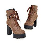Susanny Womens Mid Calf Boots Chic High Heel Lace Military Buckle Motorcycle Cowboy Brown6 Ankle Booties