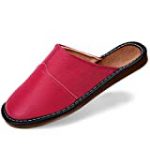 SAMSAY Unisex Genuine Cowhide House Slipper Closed Toe Flat Sandals Womens Mens